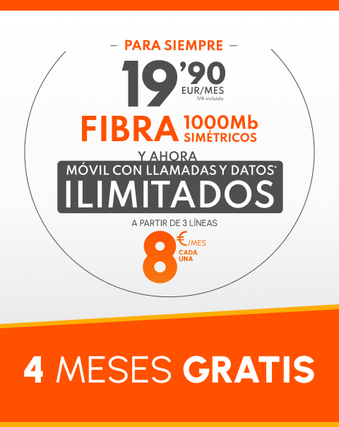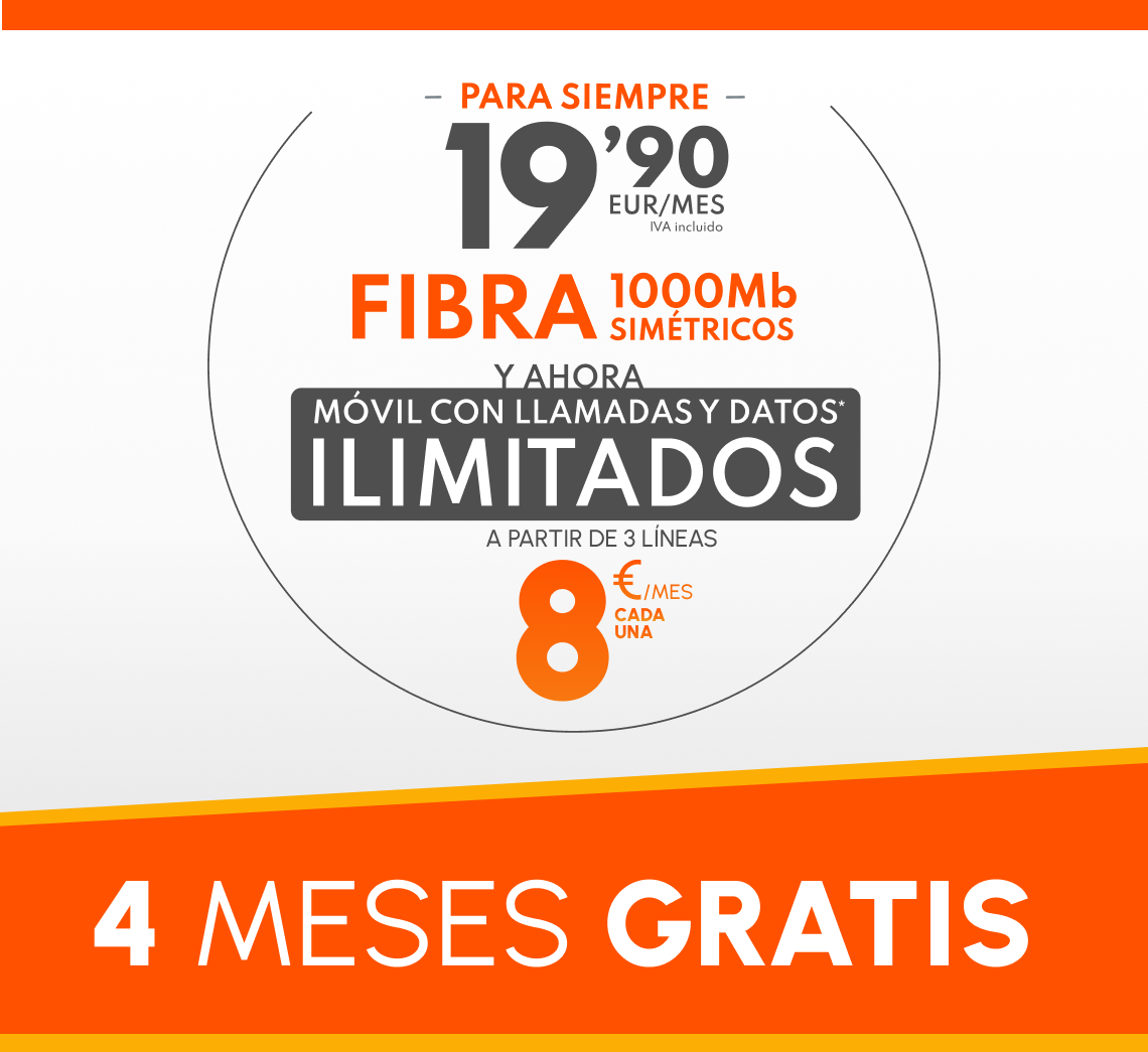 Oferta válida para altas nuevas, cliente residencial, hasta el 20 de abril de 2026. Tarifas móviles consultar condiciones aquí y nuestras oficinas. Sólo en altas nuevas con promoción.